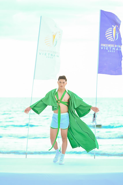 Quán Quân Fitness Model 2021 Hữu Anh, Thanh Nhi và các thí sinh của cuộc thi Fitness Model World Vietnam 2022 mùa 5 có màn trình diễn vô cùng hấp dẫn trong bộ sưu tập “Năng Lượng Xanh” của nhà thiết kế NTK Givan Trần (Trần Giàu) kết hợp cùng Thế Giới Đồ Tập tại bãi biển TP. Đà Nẵng.